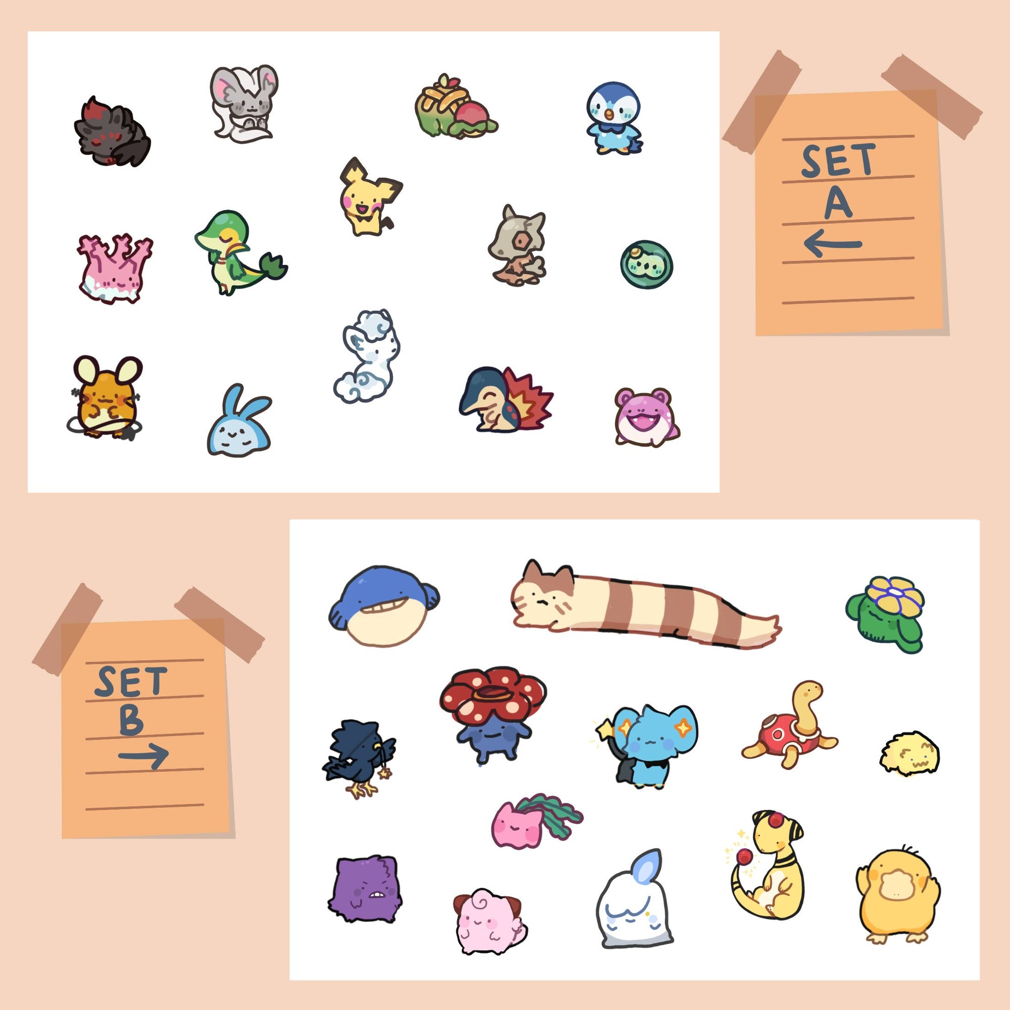 - Kiss-cut stickers, with 14 different pokemon.