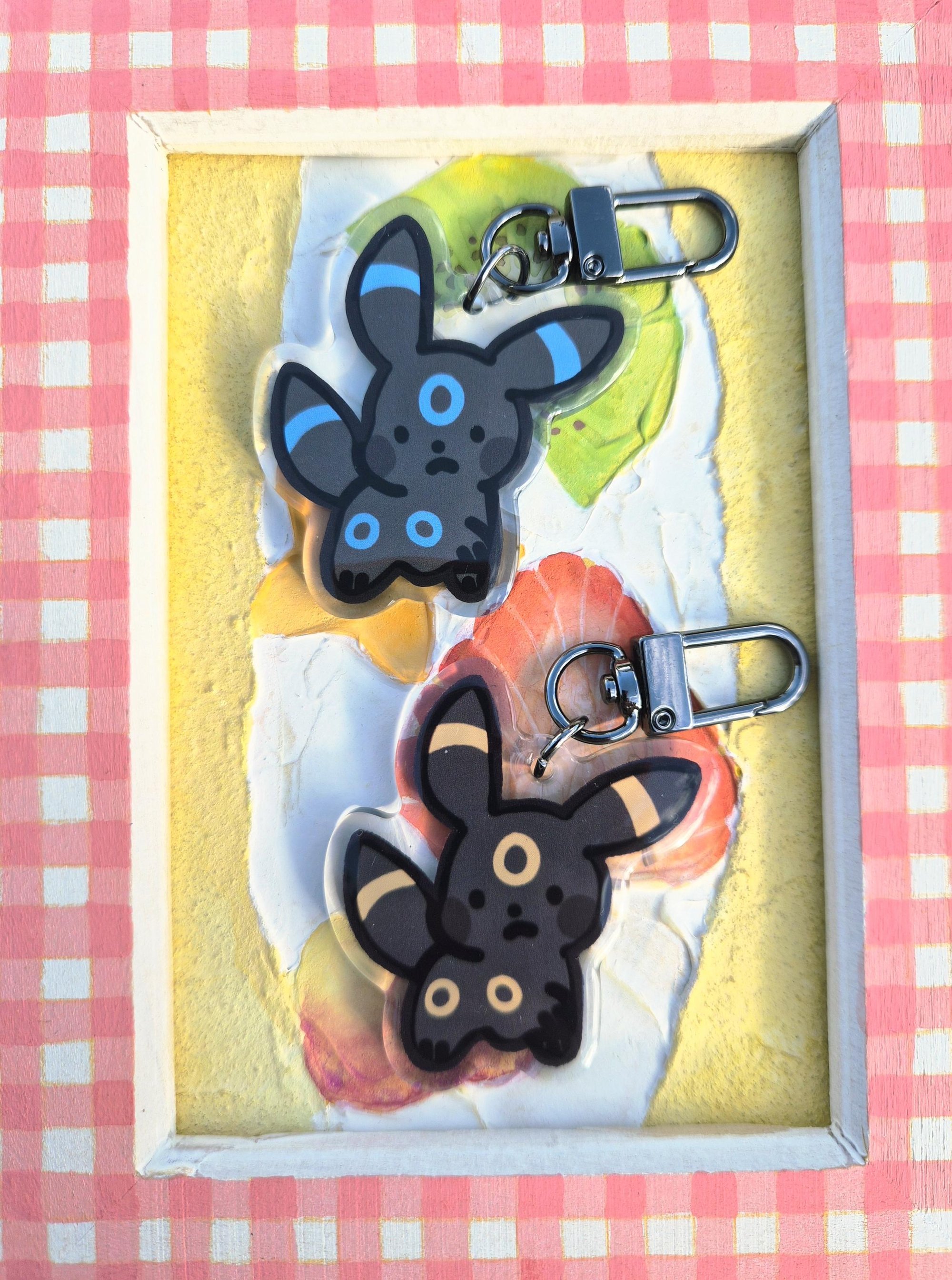 A shiny and normal umbreon that makes a perfect companion to backpacks, bags, and more :) Get both to match with a friend!